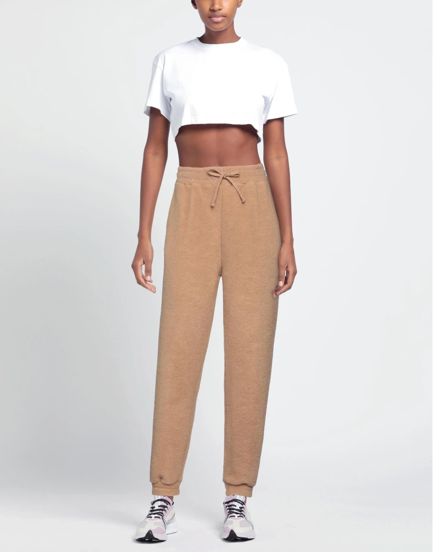 Boucléwolle, Brand Logo, einfarbig, hohe Taille, Taillenzug, Karottenschnitt, Comfort fit, Tunnelzug, viele Taschen, Sportlich