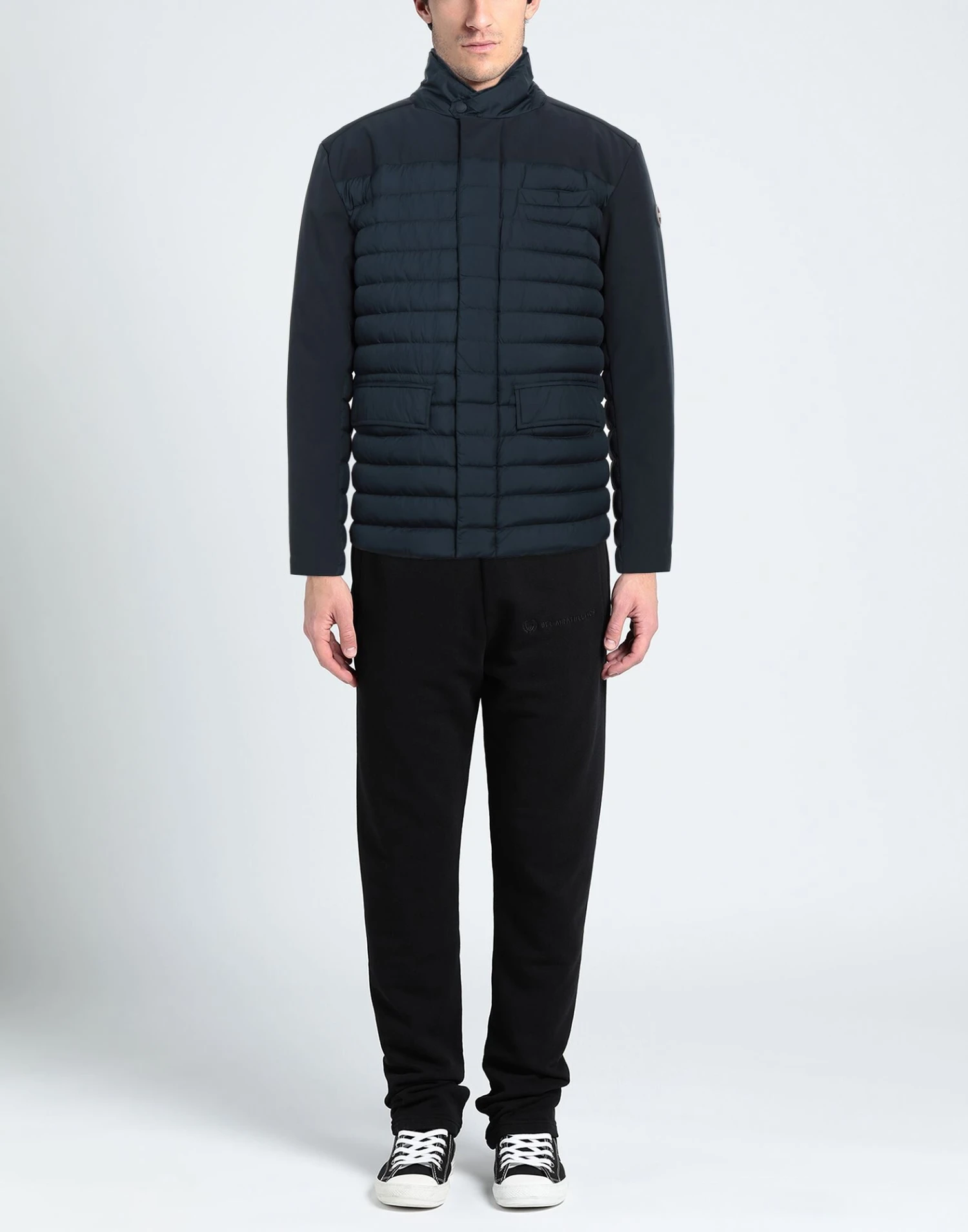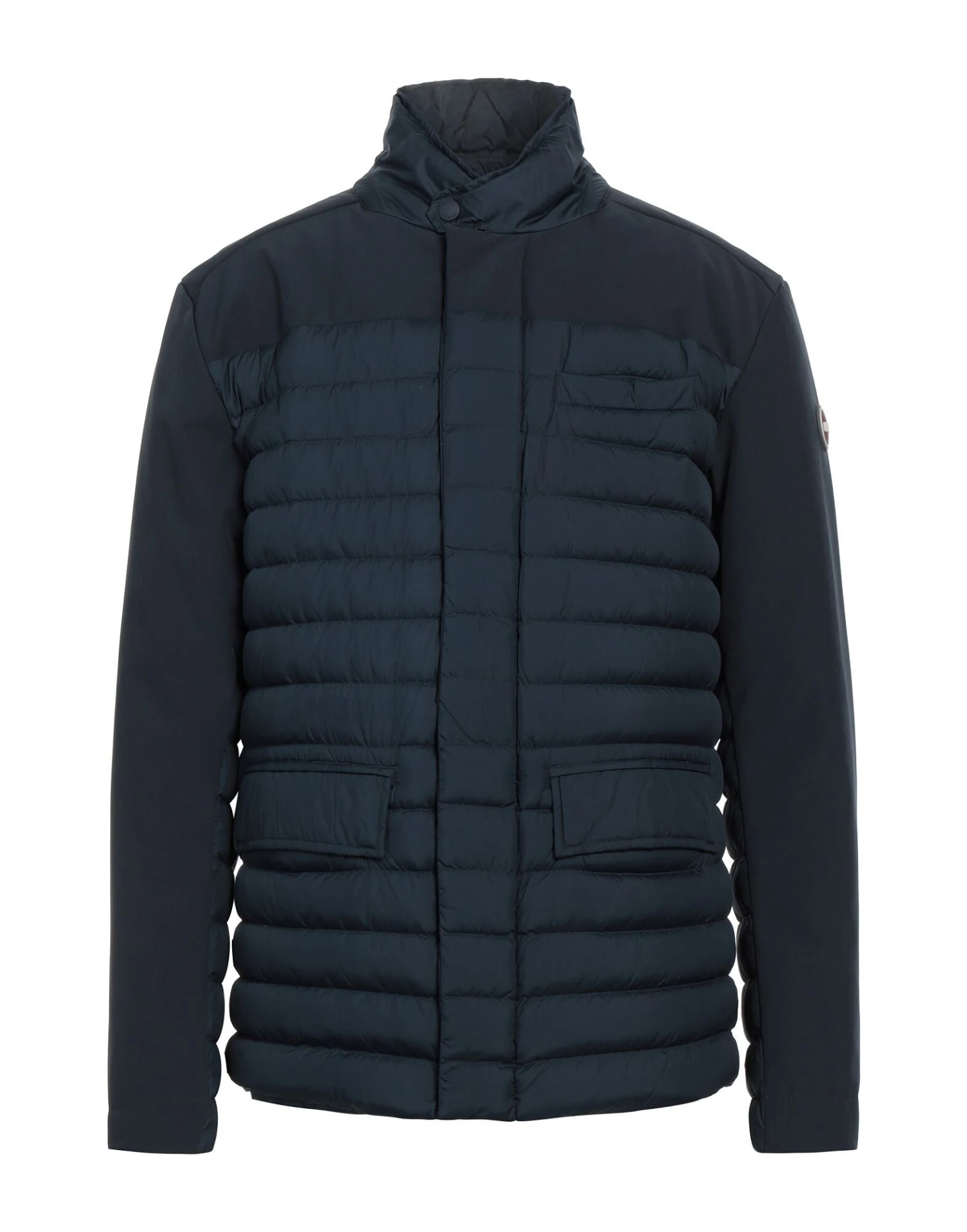 Hightech-Gewebe, gesteppt, Brand Logo, einfarbig, Rollkragen, Einreiher, lange Ärmel, mit Entenfedern gefüttert, Druckknöpfe, Reißverschluss, viele Taschen, Enthält nichttextile Teile tierischen Ursprungs., Einreiher